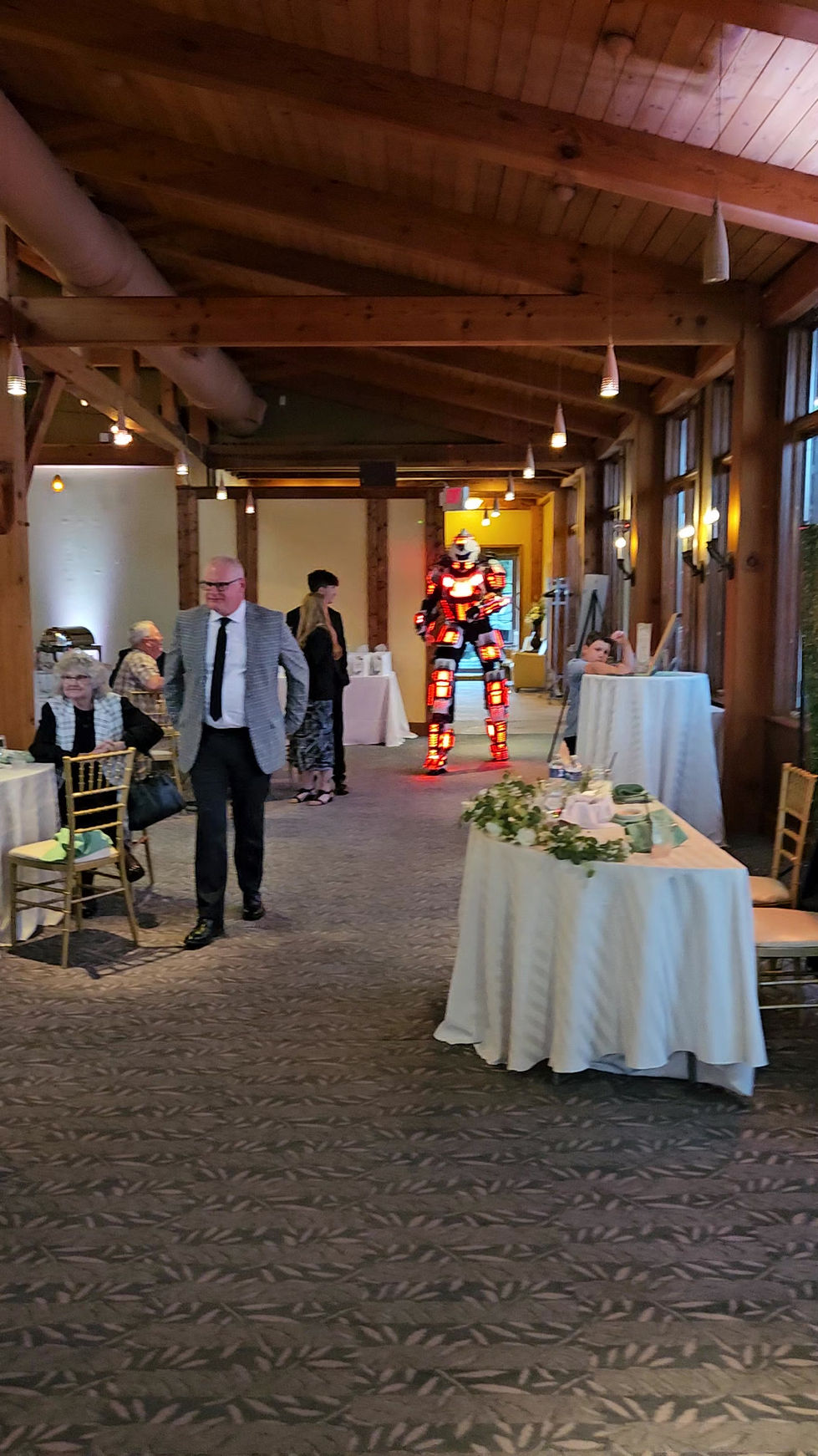Capone, a 9 ft LED robot, has spent several years dancing with the crowd, but he has entered into early retirement. But, he's still available for meet and greet events, which includes amazing photo opportunities that will last a lifetime.